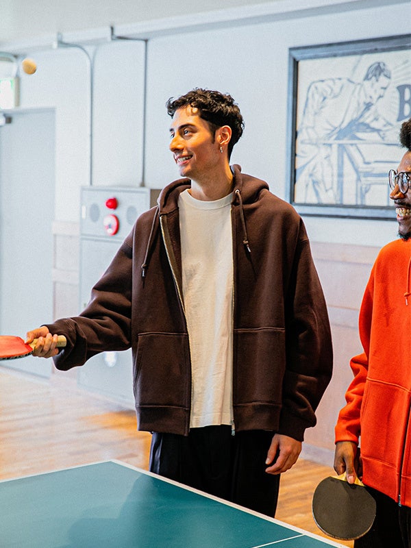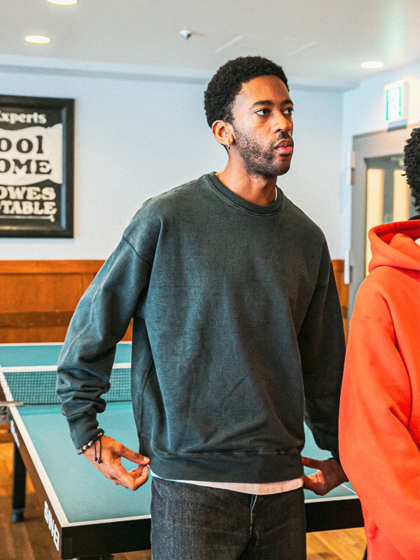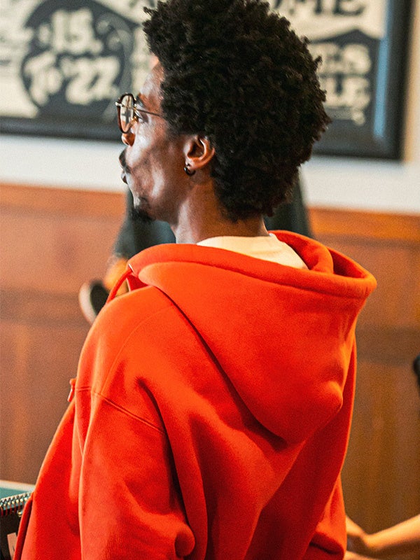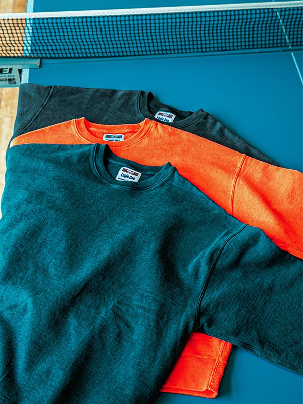 アーティストたちが好んで愛用したアメリカ90’sのスウェットのディテールや雰囲気にインスピレーションを得ながら、国内工場で編んだタフな裏毛生地を用いて丁寧に現代のシルエットに落とし込みました。