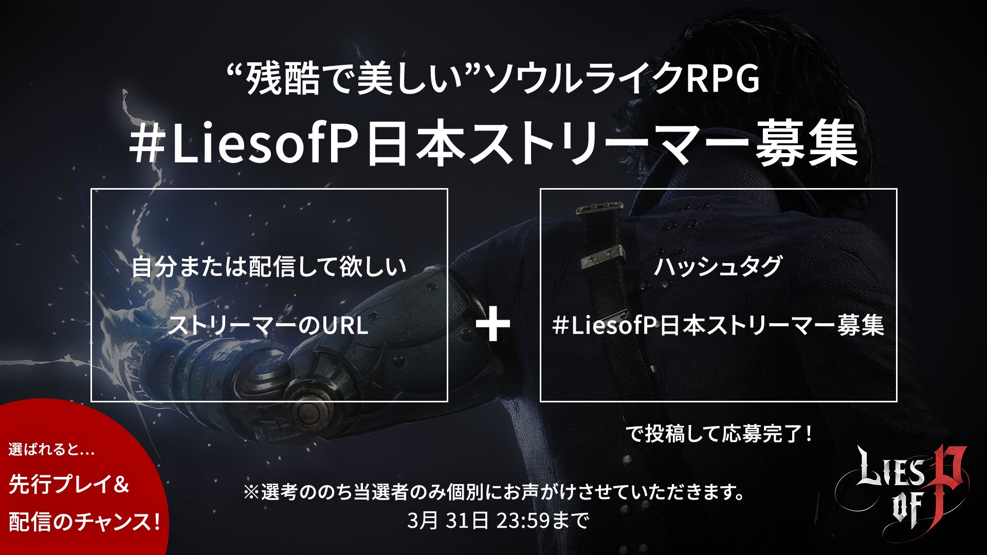 ・公認インフルエンサーオーディション結果発表!今注目『Lies of P』を配信するのはこちらの皆様! |