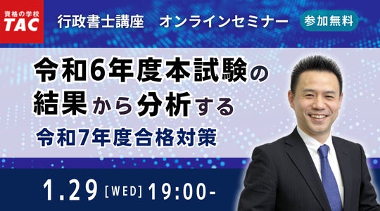 行政書士試験対策講座を展開しているTAC株式会社(東京都千代田区、代表取締役:多田敏男)は、1/29(水) 令和6年度 行政書士試験 合格発表当日より、『合格者の喜びの声』を募集・公開します。また、受験経験者を対象に本試験の結果から分析する今後の対策についてオンラインセミナーを開催します。