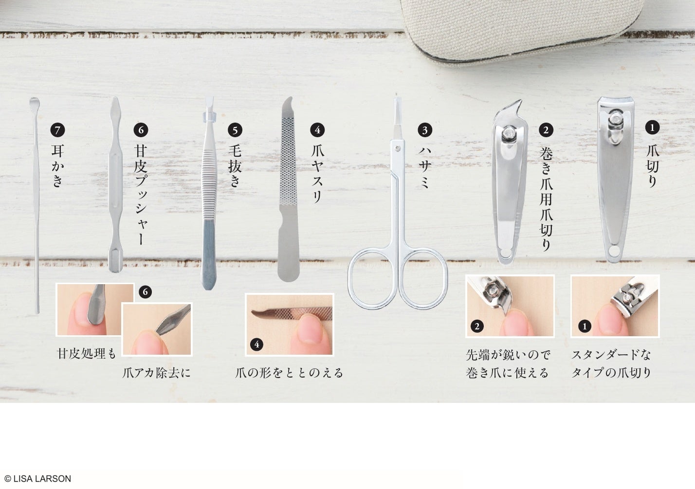 【①爪切り②巻き爪爪切り③ハサミ④爪ヤスリ⑤毛抜き⑥甘皮プッシャー⑦耳かき】つき