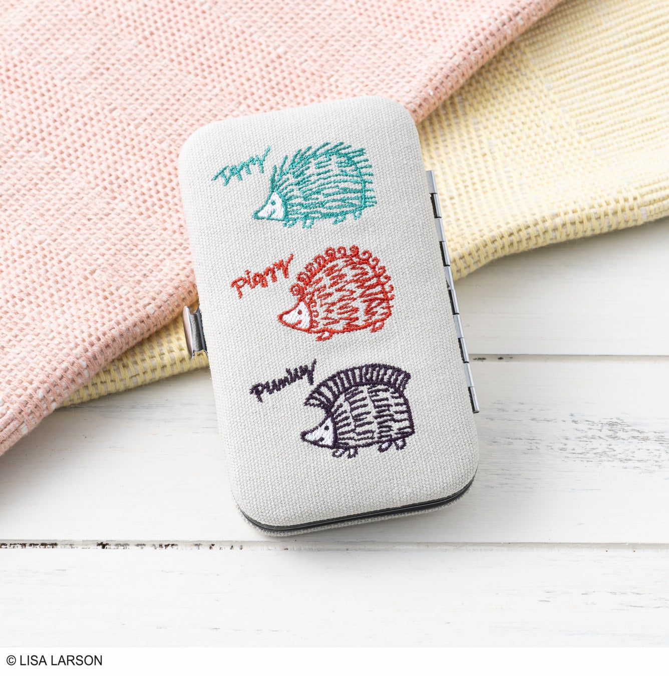 こちらは、はりねずみ3兄弟のイギー、ピギー、パンキーの刺しゅうがかわいい、便利な身だしなみ7点セットです。