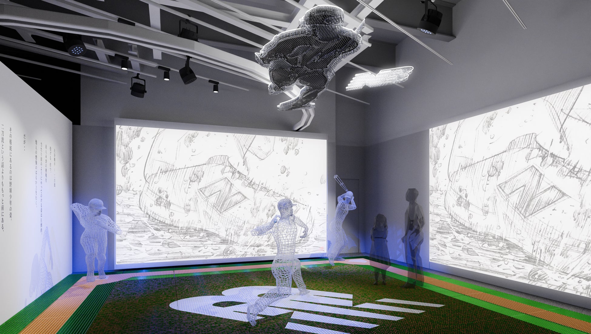グラウンドでの大谷選手の躍動感と興奮を、革新的な立体造形技術をコアに持つブランド「130(ワンサーティ)」の3Dプリントアートと照明や映像で再現した没入感のある空間。シグネチャーロゴを肌で体感できます。