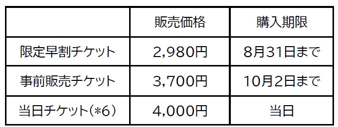 チケット価格 : 3種類のチケットを販売しています。