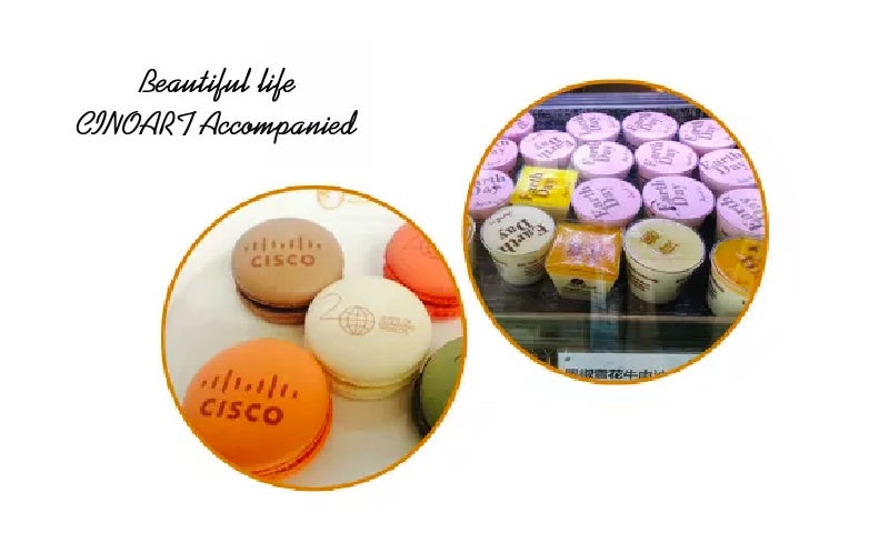 ・コーヒーだけではなくケーキやマカロンにもプリント可能