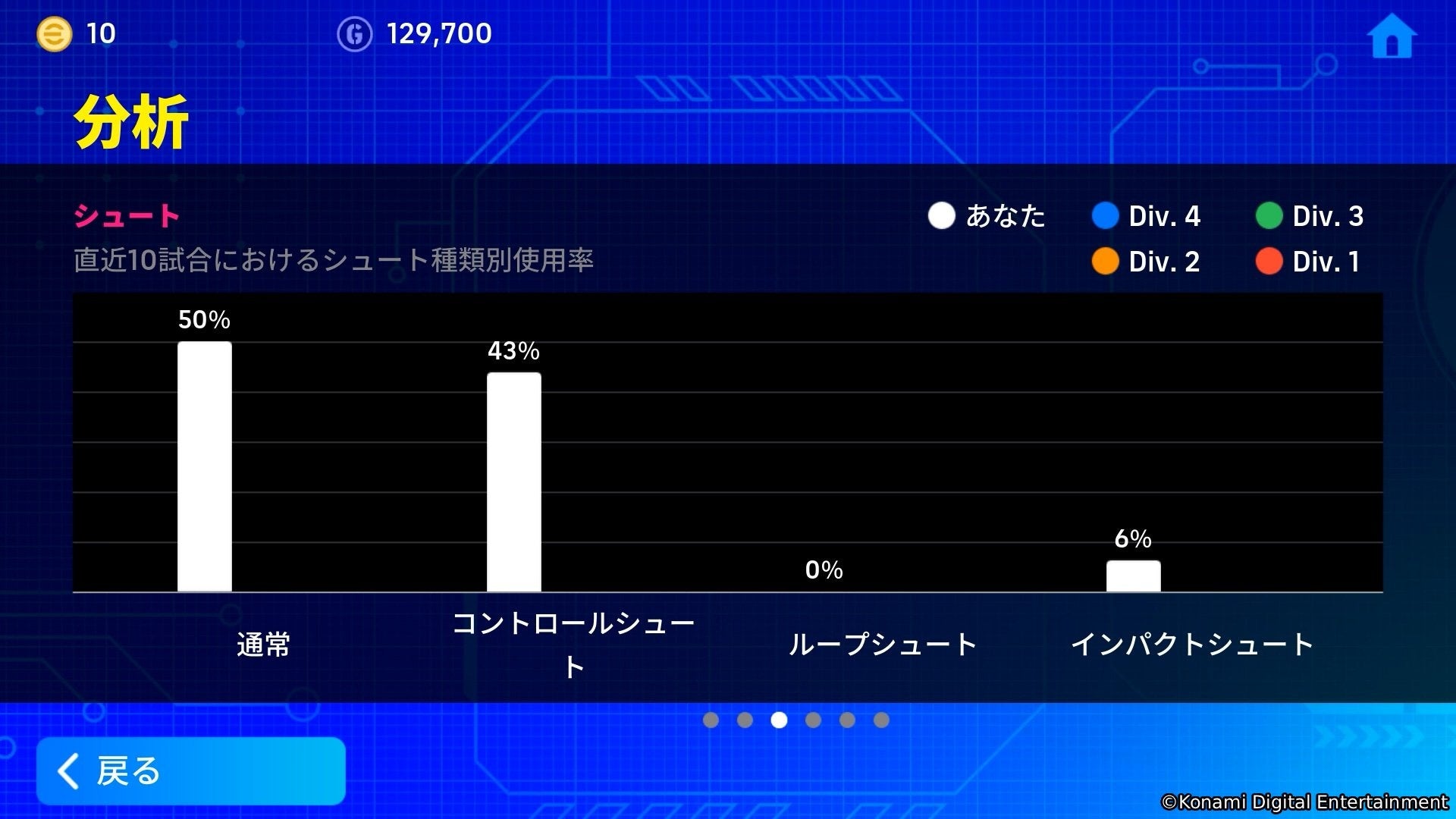 分析機能では、Division1から4のプレーヤーのデータとの比較グラフなども確認することが出来ます。