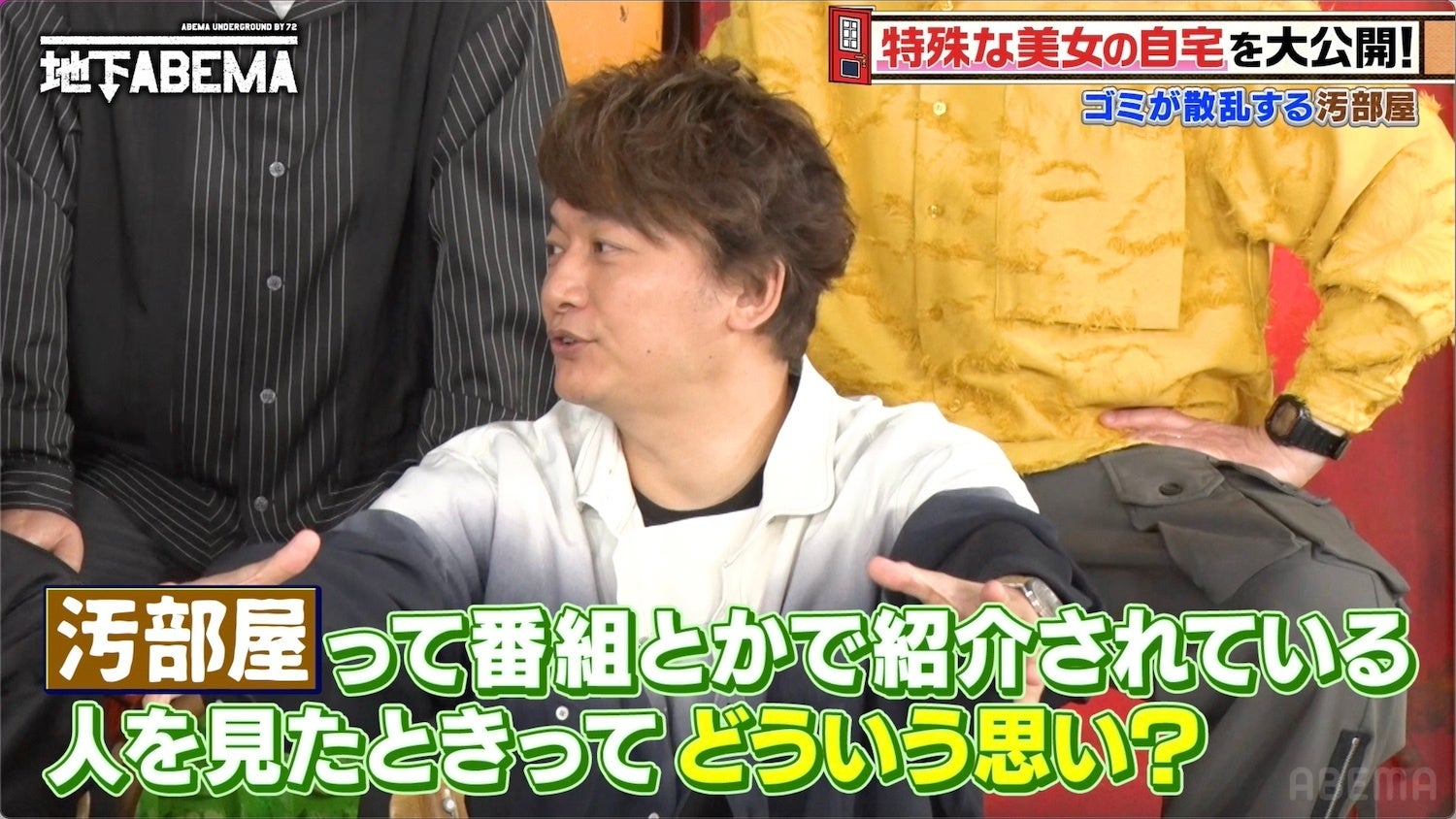 「10年間で掃除はたった1回」「江頭2:50さんに企画で掃除してもらった」ゴミやものにまみれた汚部屋に住む女性に香取「半端じゃない」草彅「本当に住んでるの?」|『ななにー 地下ABEMA』#70