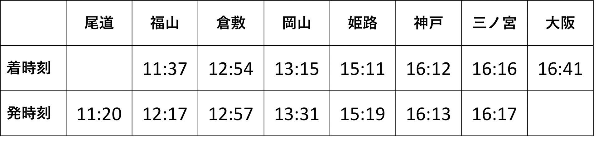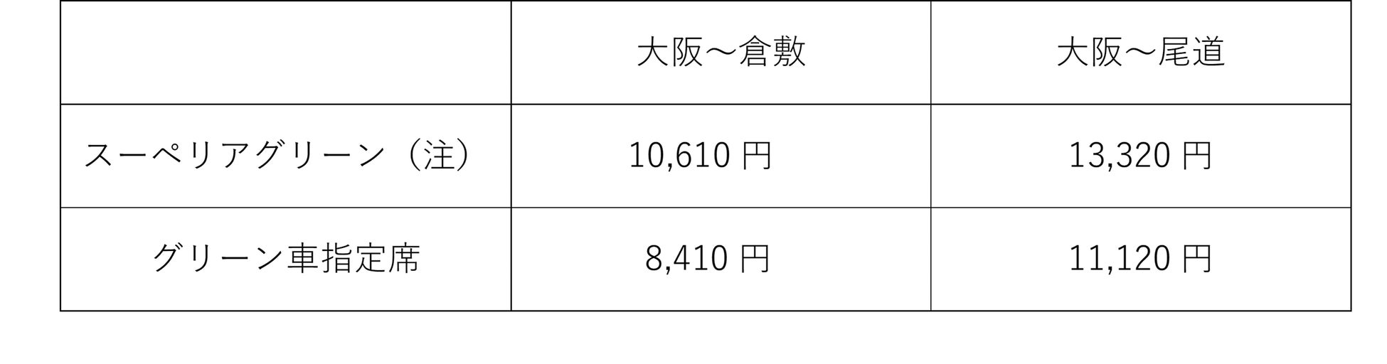 ※ 今回の大阪~尾道の運行については、400kmまでの料金が適用になります。