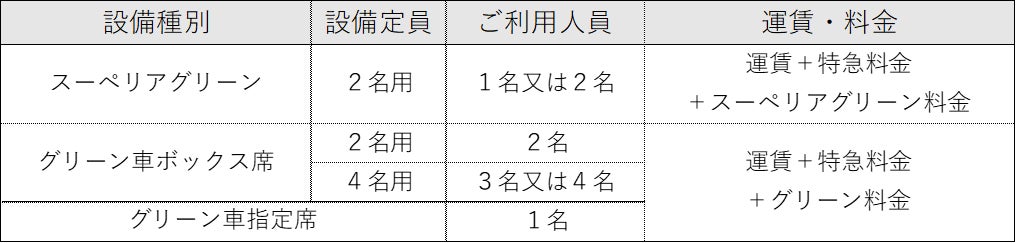 ※スーペリアグリーン、グリーン車ボックス席は区画単位で発売します。