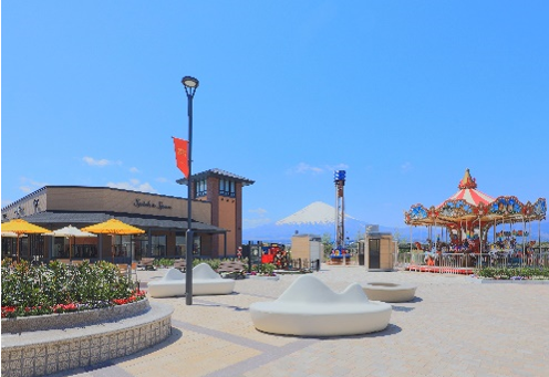 遊園地の真ん中に位置するフードスタジアム前のエリア(ラグーンリンク跡地)に、約5,800㎡の多目的広場が登場いたします。この広場には、今後飲食フェアやダンスイベント、フリーマーケットなどさまざまな催事を開催するイベントスペースのほか、富士山を望む小高い丘に座ってお寛ぎいただける人工芝の憩いのスペースなどがあり、お客様が思い思いの形でお過ごしいただけます。