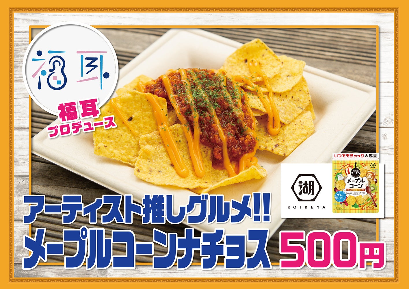 「いつでもチャック メープルコーン ほんのり香るバター味」の発売に先行して、9月23日(土)に横浜赤レンガパークにて開催される音楽フェス「Augusta Camp 2023 〜SUKIMASWITCH 20th Anniversary〜」にて、本商品と「ドンタコス チリトマト」を使用したアレンジレシピ商品の販売が決定しました。