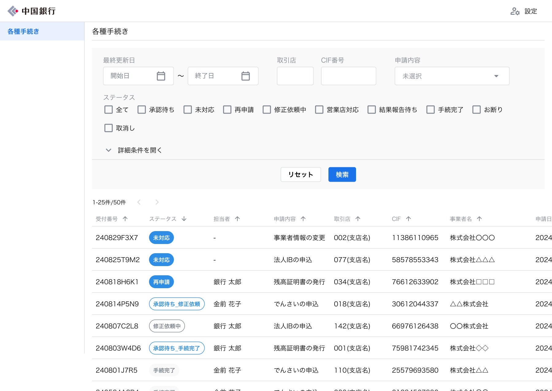 本サービスでは、法人口座の代表者変更や住所変更といった諸手続きを、受付から申請内容の確認・修正依頼、承認までオンラインで行えます※2。これにより、従来行っていた訪問時の書類準備や、預かり証の発行、記入不備等で往復する必要がなくなり、営業担当者が本来必要な業務を行う時間を捻出できます。