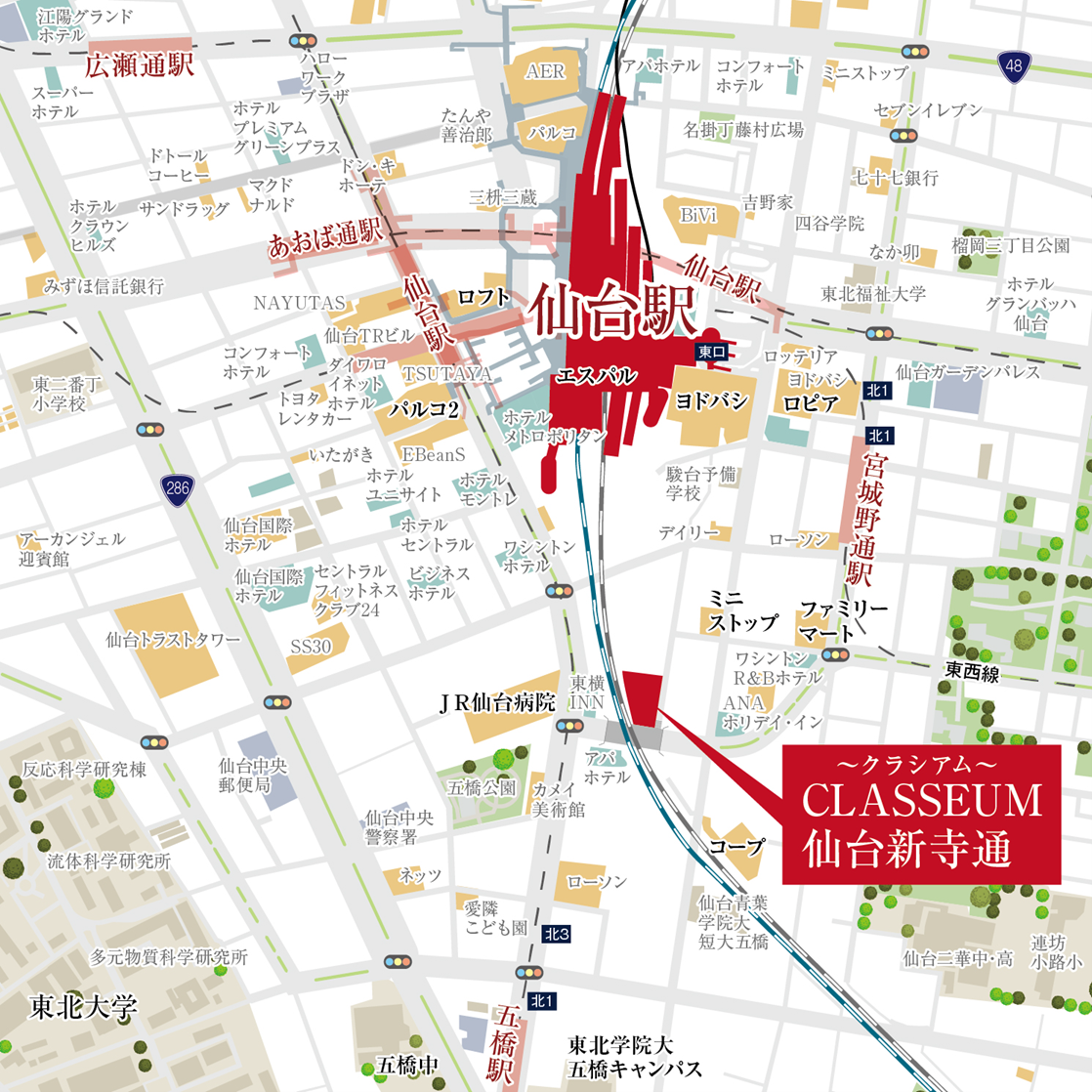 交通:JR線「仙台」駅8分 南北線「五橋」駅7分