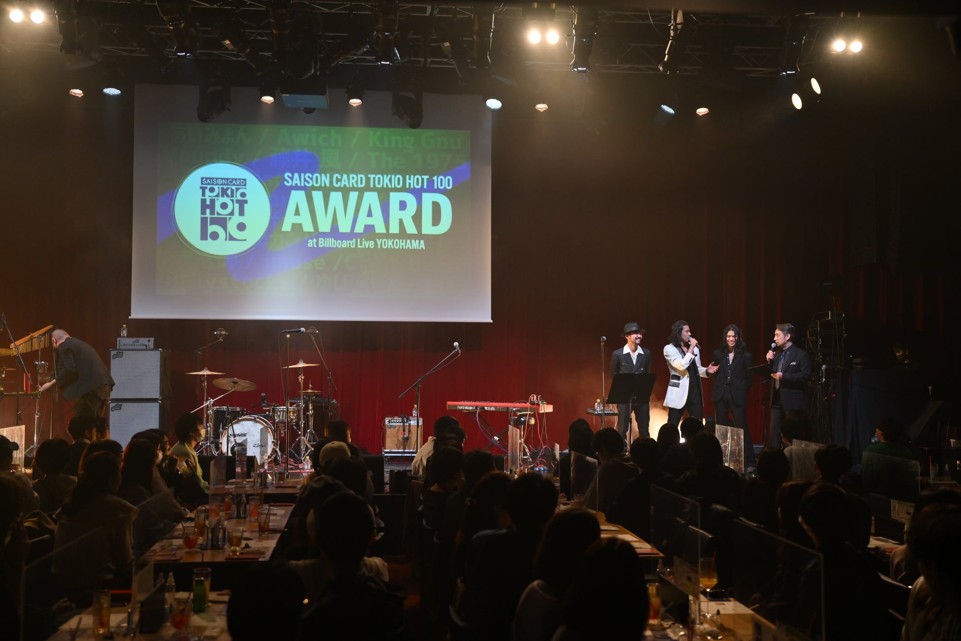 2015年に開催された「TOKIO HOT 100 CHART OF THE YEAR」以来、8年ぶりに開催されることとなったJ-WAVEオリジナルの音楽賞の発表と授賞セレモニー「SAISON CARD TOKIO HOT 100 AWARD」。2020年代にあわせ、新たな賞設定でリニューアルしての実施となった。神奈川・Billboard Live YOKOHAMAにて行われた授賞セレモニーでは、受賞結果の発表とともに、注目のアーティストたちがパフォーマンスを披露した。