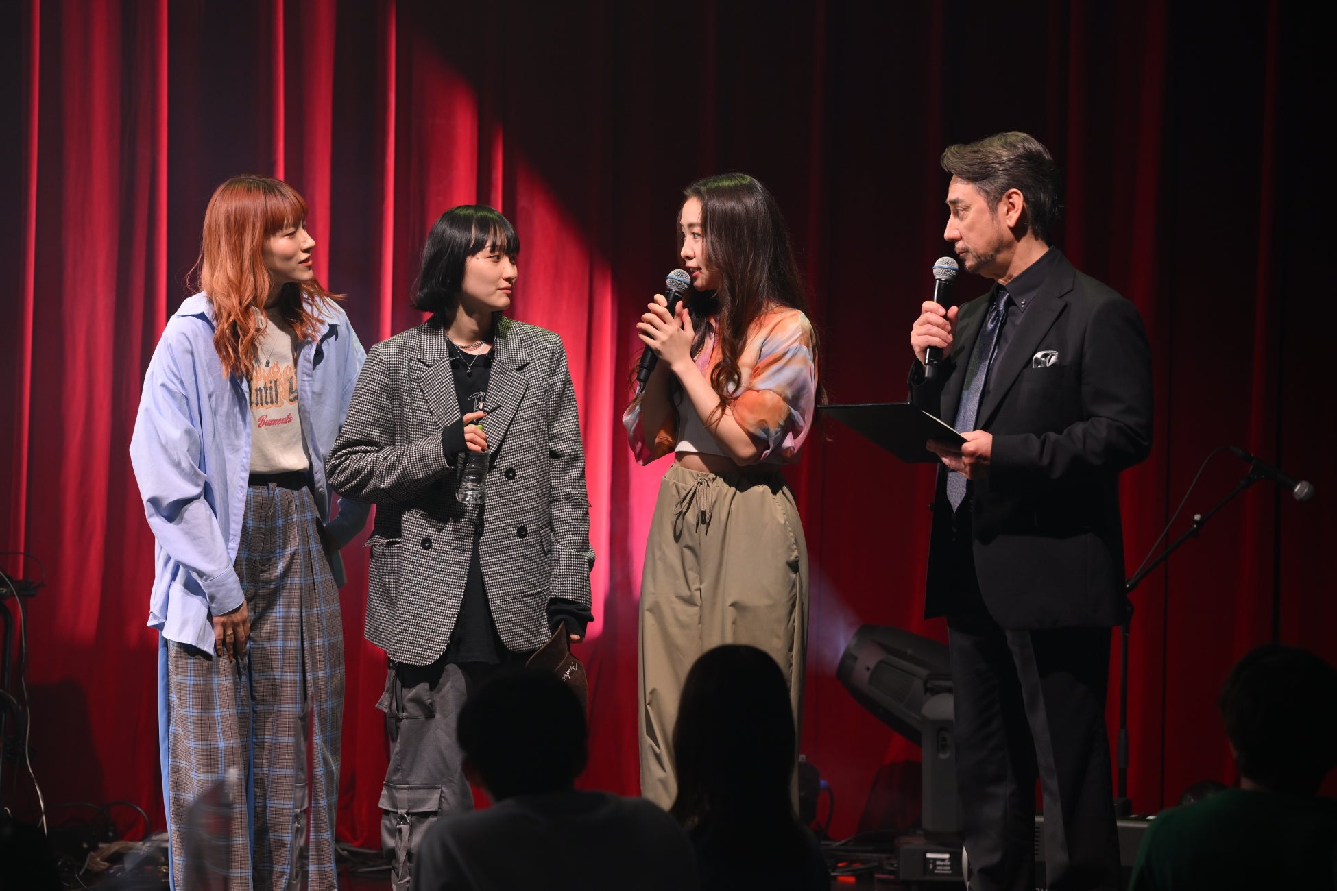 さらにChilli Beans.は受賞記念のライブも実施。1曲目「rose feat. Vaundy」から、Maika(Ba&Vo)の鳴らすうねったベース、Lily(Gt&Vo)による歪んだギター、たおやかなMoto(Vo)のボーカルがいっぱいに広がり、一瞬にして会場を支配する。続く「アンドロン」では、Motoがスタンドマイクを前にスーツのポケットに手を入れたり体を揺らしたりと、3人はディープな楽曲に身を委ねた。Lilyが「今回は受賞できて本当に本当にうれしいです」と改めて受賞の喜びを口にすると、バンドは最後に「SONAR TRAX」に選ばれた「School」を笑顔で届けた。ライブ後には、あらためてクリス・ペプラーとトーク。「(「BEST SONAR TRAX OF 2022」受賞は)光栄ですが、これからも気負うことなく、自分たちらしく音楽を届け続けていけたらいいなと改めて思いました。制限をつけずにいろんなことに挑戦していけたら楽しそうだなと思っています」と今後のバンドの活動への展望を語った。