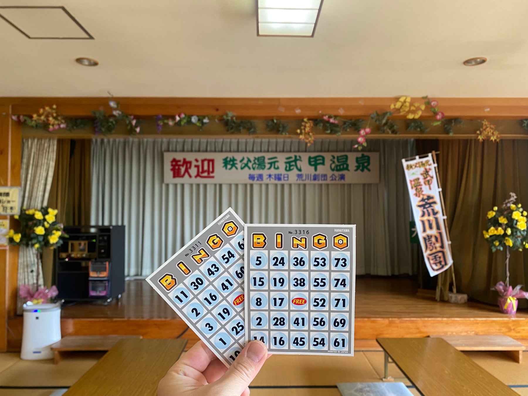通常より豪華なビンゴ大会を開催します。武甲温泉のアイテムや地元のお土産など豪華景品を多数ご用意していますので、奮ってご参加ください。