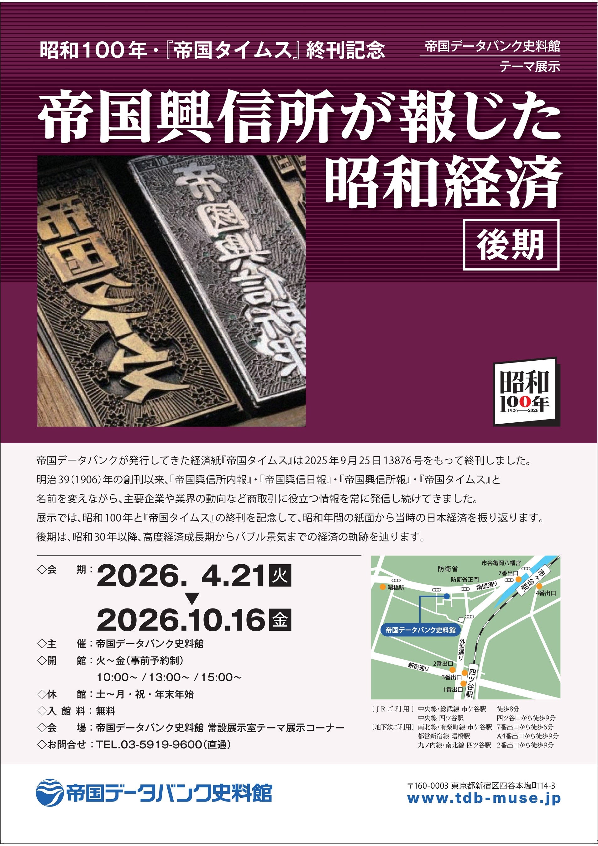 帝国データバンク史料館 昭和100年・『帝国タイムス』終刊記念 企画展「帝国興信所が報じた昭和経済(後期)」開催のお知らせ