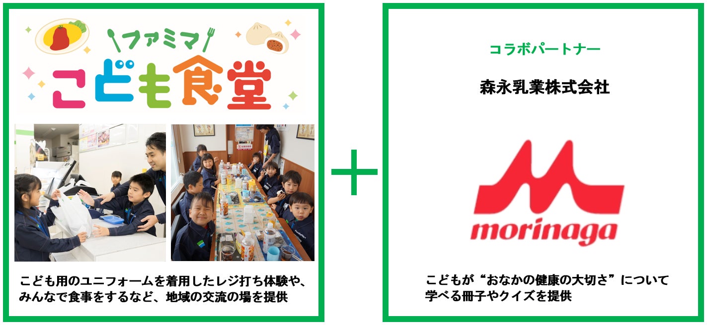 株式会社ファミリーマート(本社:東京都港区、代表取締役社長:細見研介、以下「ファミリーマート」)は、森永乳業株式会社(本社:東京都港区、代表取締役社長 大貫陽一、以下「森永乳業」)と「ファミマこども食堂」において、こどもがおなかの健康を楽しく学べるコラボイベントを2024年7月1日(月)ファミリーマート西池袋店(東京都豊島区)での開催を皮切りに、2024年8月末まで、全国の開催希望店舗にて順次実施してまいります。
