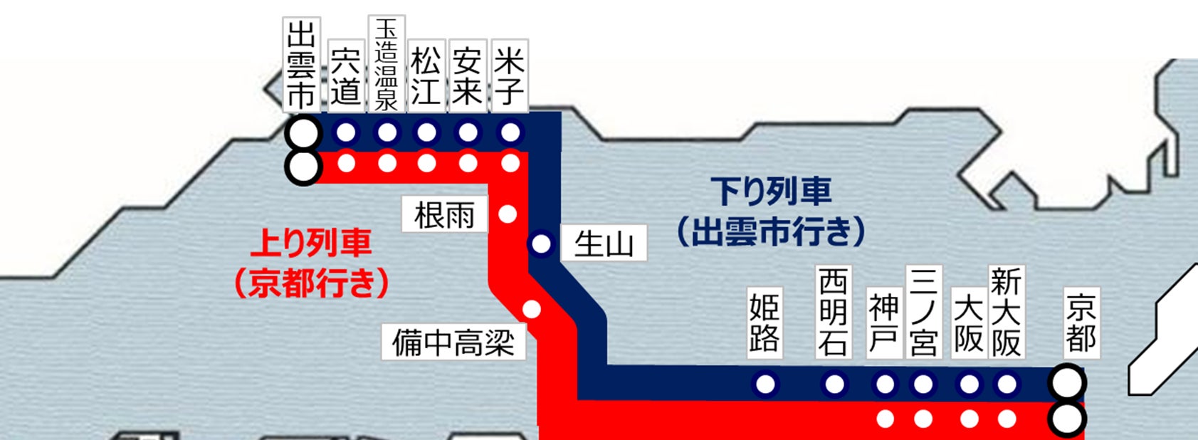 発駅 出雲市・宍道・玉造温泉・松江・安来・米子・根雨・備中高梁