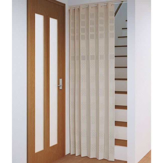 花粉分解と菌やニオイをブロックできる抗菌・消臭加工を施した、アコーディオンタイプののれん。