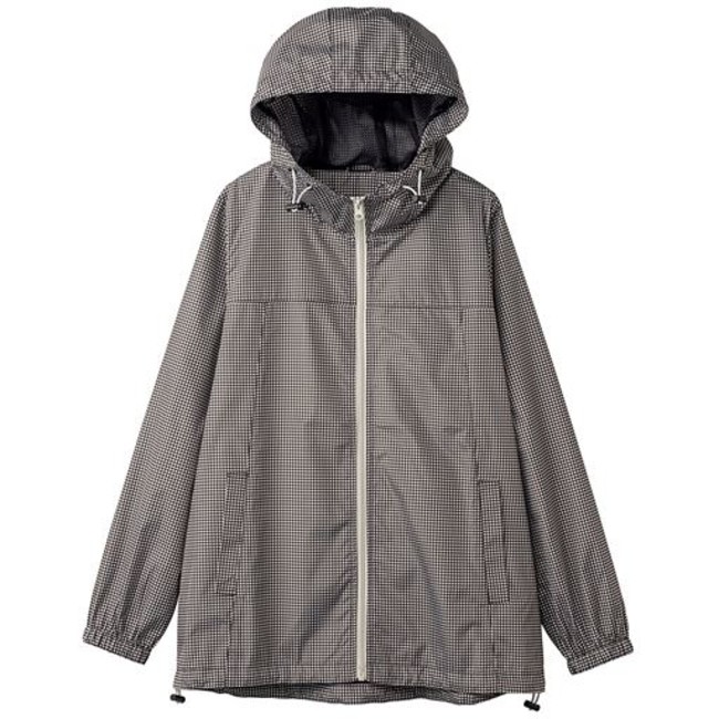 表面がつるつるしており、花粉がつきにくく、ついても落ちやすいポリエステル素材のフード付きパーカー。