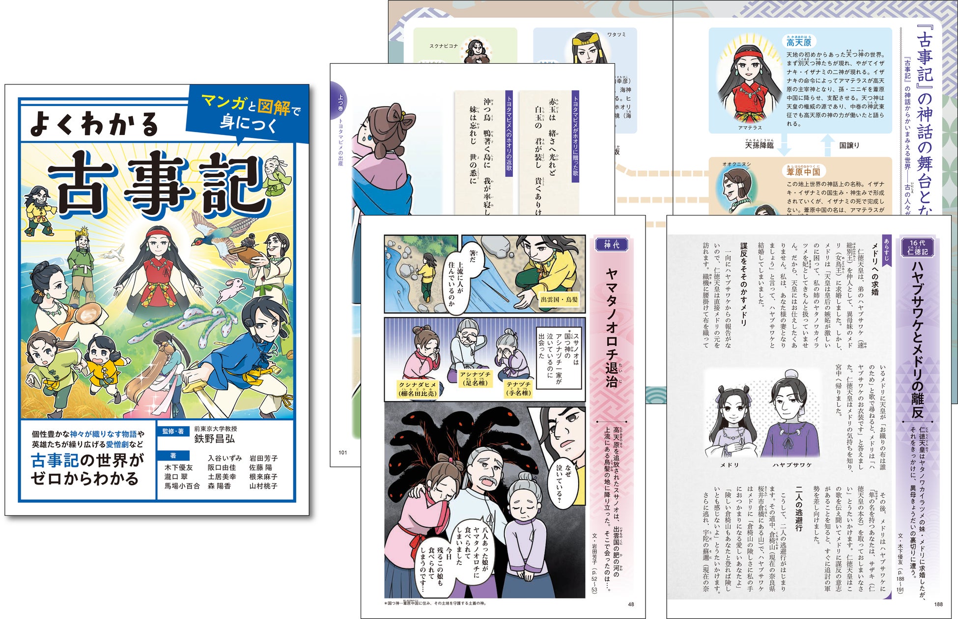 本書は、『古事記』を知るうえで必要となる知識を紐解き、物語を深堀りする解説で、神々や英雄たちの活躍から愛憎劇、歌謡まで、古事記の魅力を余すところなく楽しむことができる1冊です。イラストや図解も充実し、目で見て楽しむ・わかる工夫も満載です。