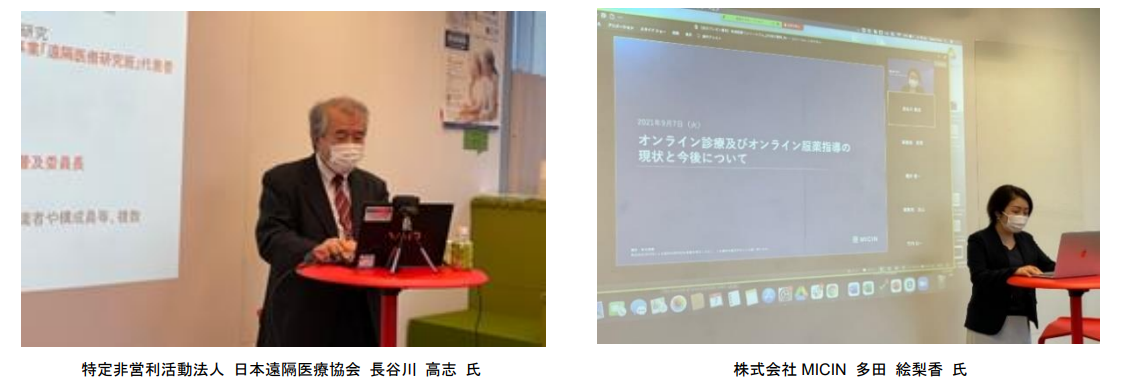 | 第1回会員向けセミナー (2021年9月7日 オンラインで開催) <内容> 第 1 部「遠隔医療概要」 └講師:特定非営利活動法人 日本遠隔医療協会 長谷川 高志 氏 第 2 部「オンライン診療・服薬指導の診療報酬について」 └講師:株式会社MICIN 多田 絵梨香 氏 |