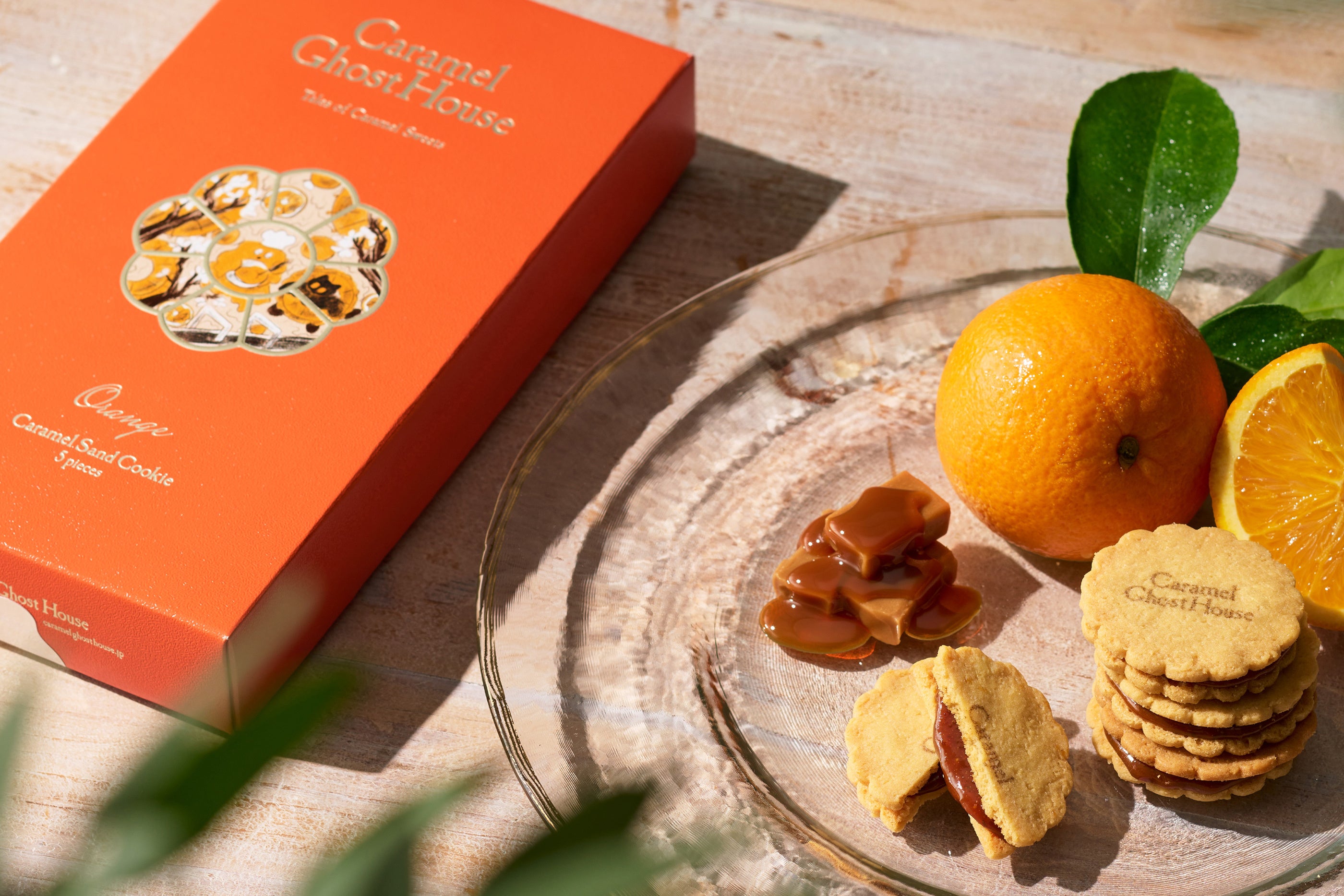 今春リブランド【キャラメルゴーストハウス】から期間限定の新たな味わい「キャラメルサンドクッキー オレンジ」が新発売。