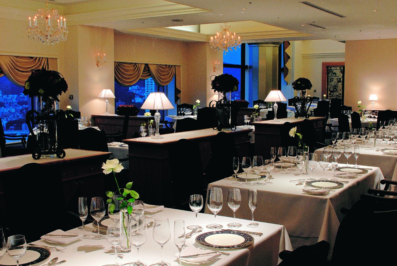 ホテル最上階の空間で広島の美しい夜景を眺めながら、古典的なフランス料理の真髄を伝え続ける「アピシウス」と、一皿にストーリーを込めながら独創的で新しい融合を提案していく「レストラン シャンボール」による料理と、セレクトワインが交差する特別な時間をご堪能ください。