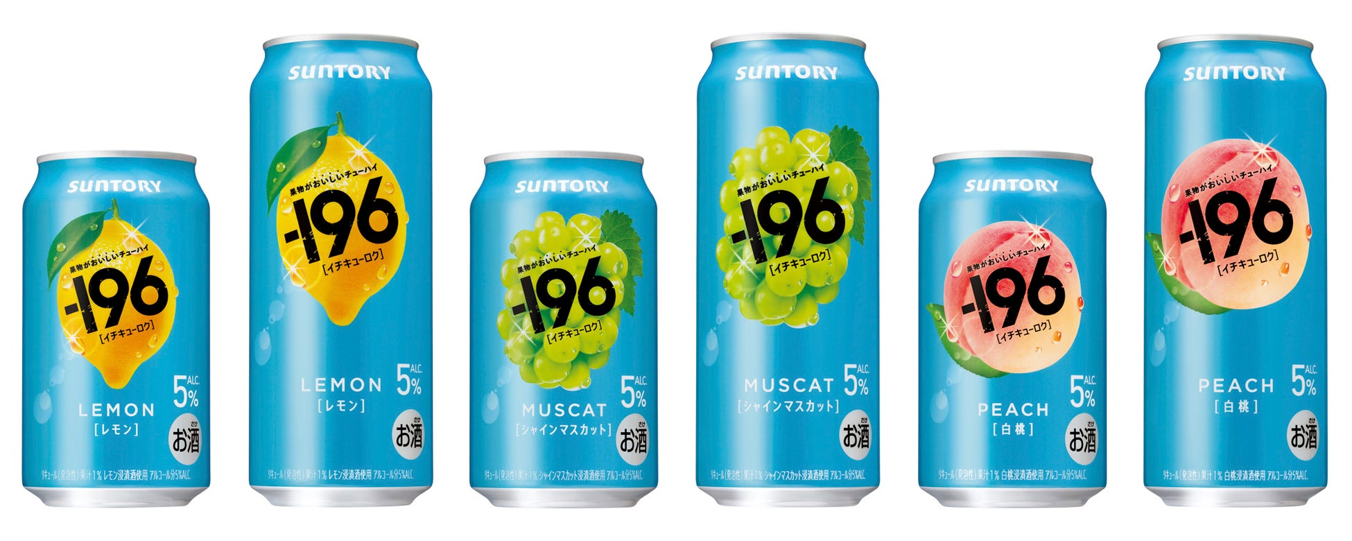 サントリー(株)は、「-196(イチキューロク)〈レモン〉」「同〈シャインマスカット〉」「同〈白桃〉」を7月29日(火)から全国で新発売します。