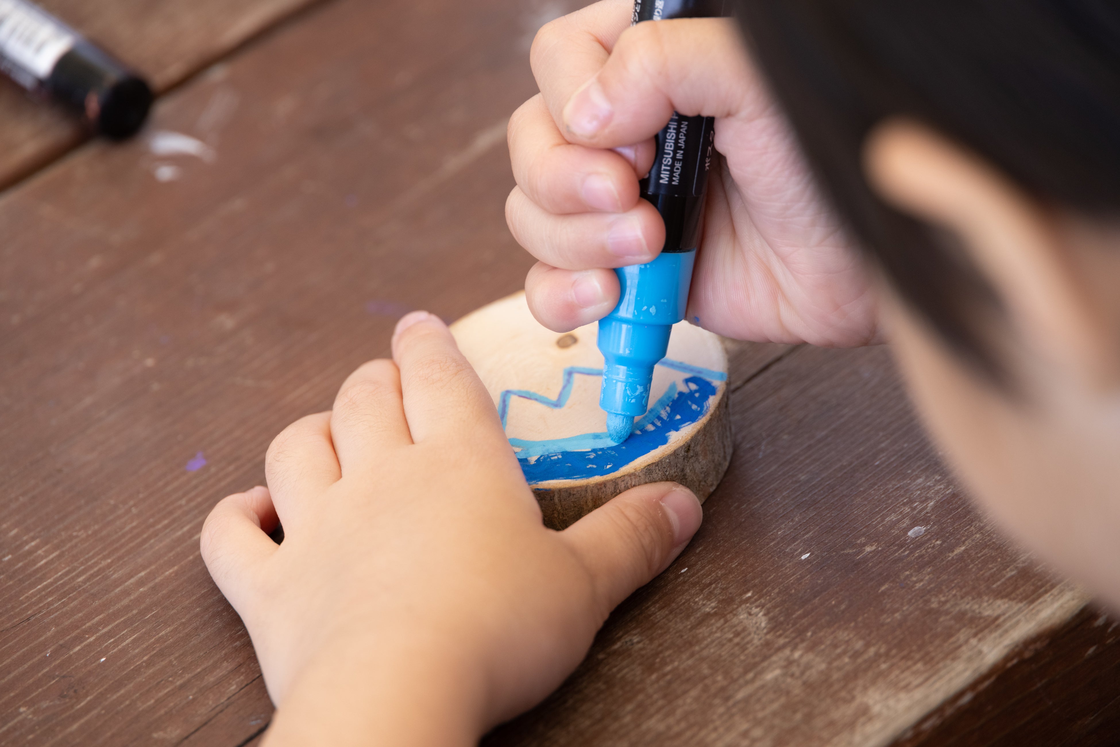 『ざんねんないきもの事典』とのコラボ焼き印が入った木製オリジナルコースターづくりイベントを開催いたします。コースターの裏面には、自由にお絵かきをして、世界に1つだけのコースターを作れます。