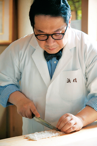 京都を代表する名店「浜作」のご主人。「浜作」は日本最初の割烹料理店で、現当主は三代目にあたる。美術や歌舞伎、音楽など芸術をこよなく愛し、供される料理の器には、さりげなく河井寛次郎などの知られざる名品が用いられている。「古都の味 日本の味 浜作」と川端康成を嘆息させた名店の味を守り、一期一会の精神で日々板場に立っている。