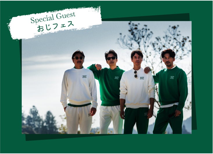 今回は、コミカルな“おじダンス”で人気を集め、SNS総再生数1億回を超える話題のメンズモデルユニット 「おじフェス」 をスペシャルゲストに迎え、特別コレクションの魅力を表現したビジュアルを公開。全員180cm超えという圧倒的な存在感を持つ4人の個性が際立つ着こなしをお見逃しなく。