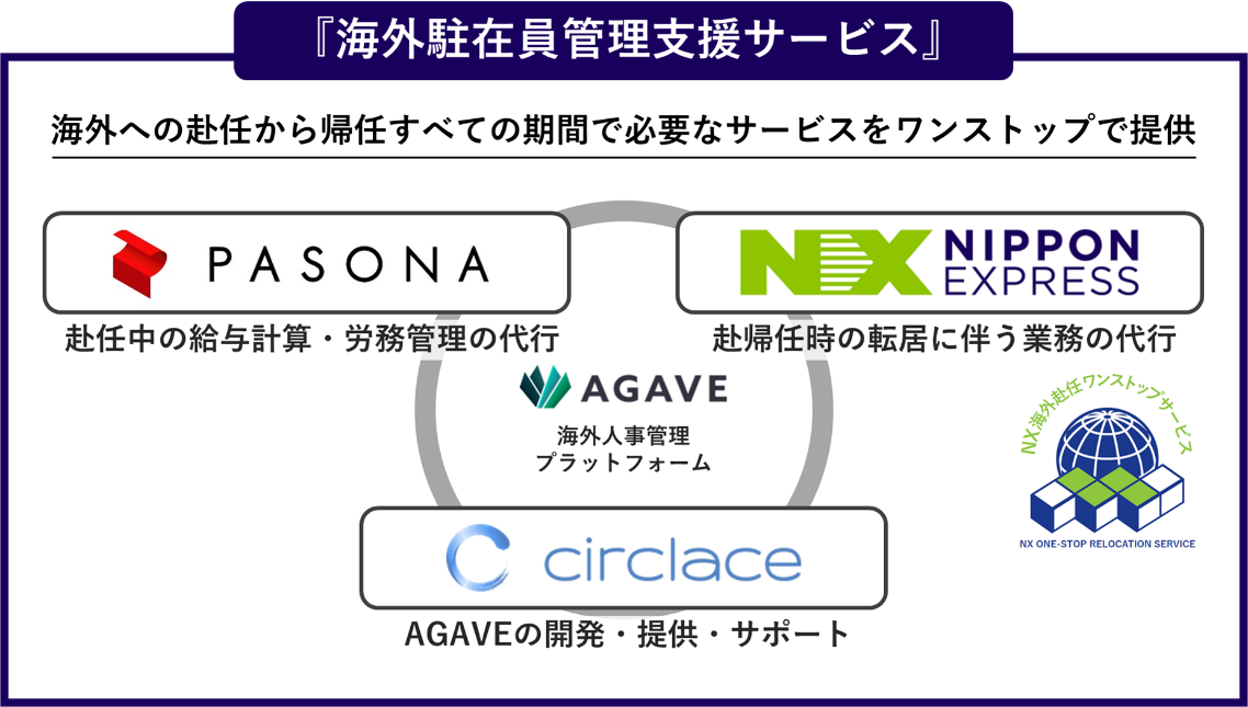 日本通運株式会社(本社:東京都千代田区、代表取締役社長 齋藤 充、以下「日本通運」)、株式会社パソナ(本社:東京都千代田区、代表取締役社長 中尾 慎太郎、以下「パソナ」)及びサークレイス株式会社(本社:東京都中央区、代表取締役社長 佐藤 潤、以下「サークレイス」)の3社は業務提携に関する基本合意書を締結し、『海外駐在員管理支援サービス』の提供を9月20日より開始いたします。