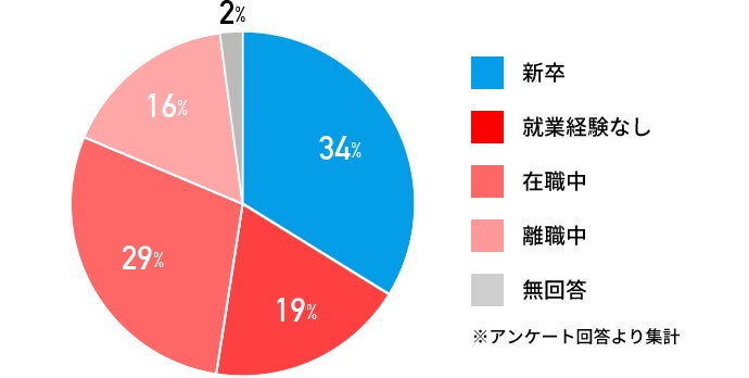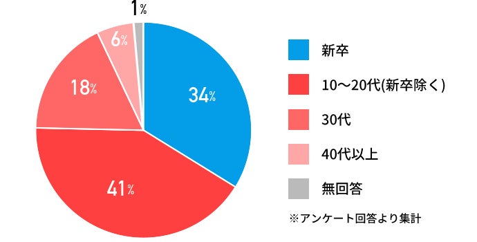 年代:新卒96名、10~20代(新卒除く)118名、30代50名、40代以上16名、無回答4名