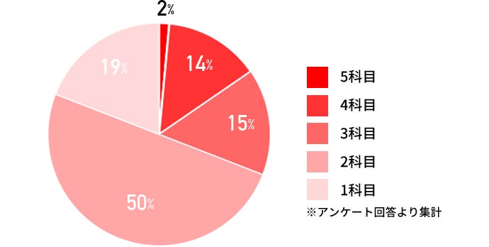 科目合格以上内訳:5科目2名、4科目19名、3科目21名、2科目68名、1科目26名