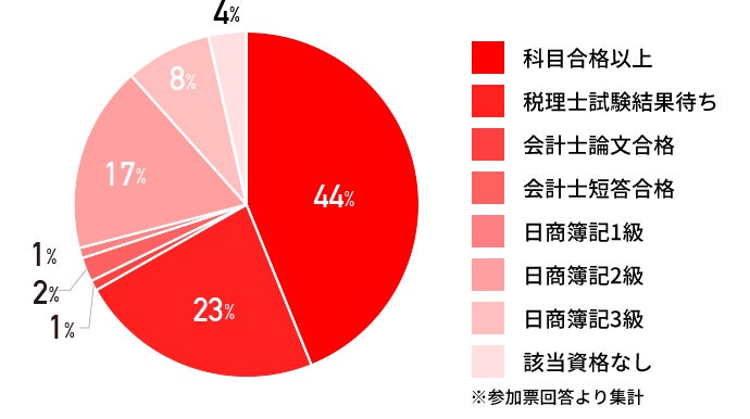 税理士の資格状況別では、税理士試験結果待ちの参加者層で「仕事と勉強の両立」「就職・転職先の選び方」、科目合格者層で「就職・転職先の選び方」が最多となった。