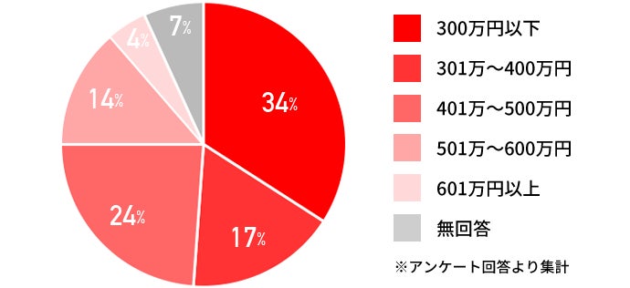 現年収:300万円以下30名、301万~400万円15名、401万~500万円21名、501万~600万円12名、601万円以上4名、無回答6名