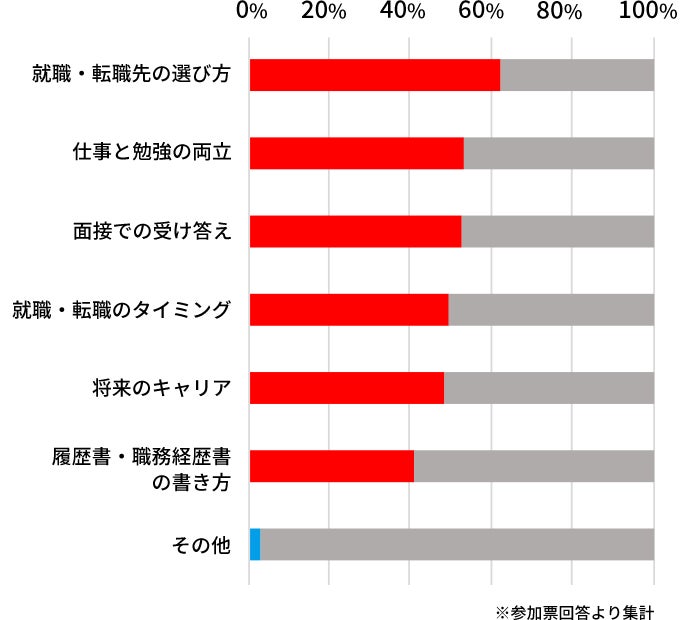 今後のキャリアややりたいことを考えたときに就職・転職を検討する様子が伺える。