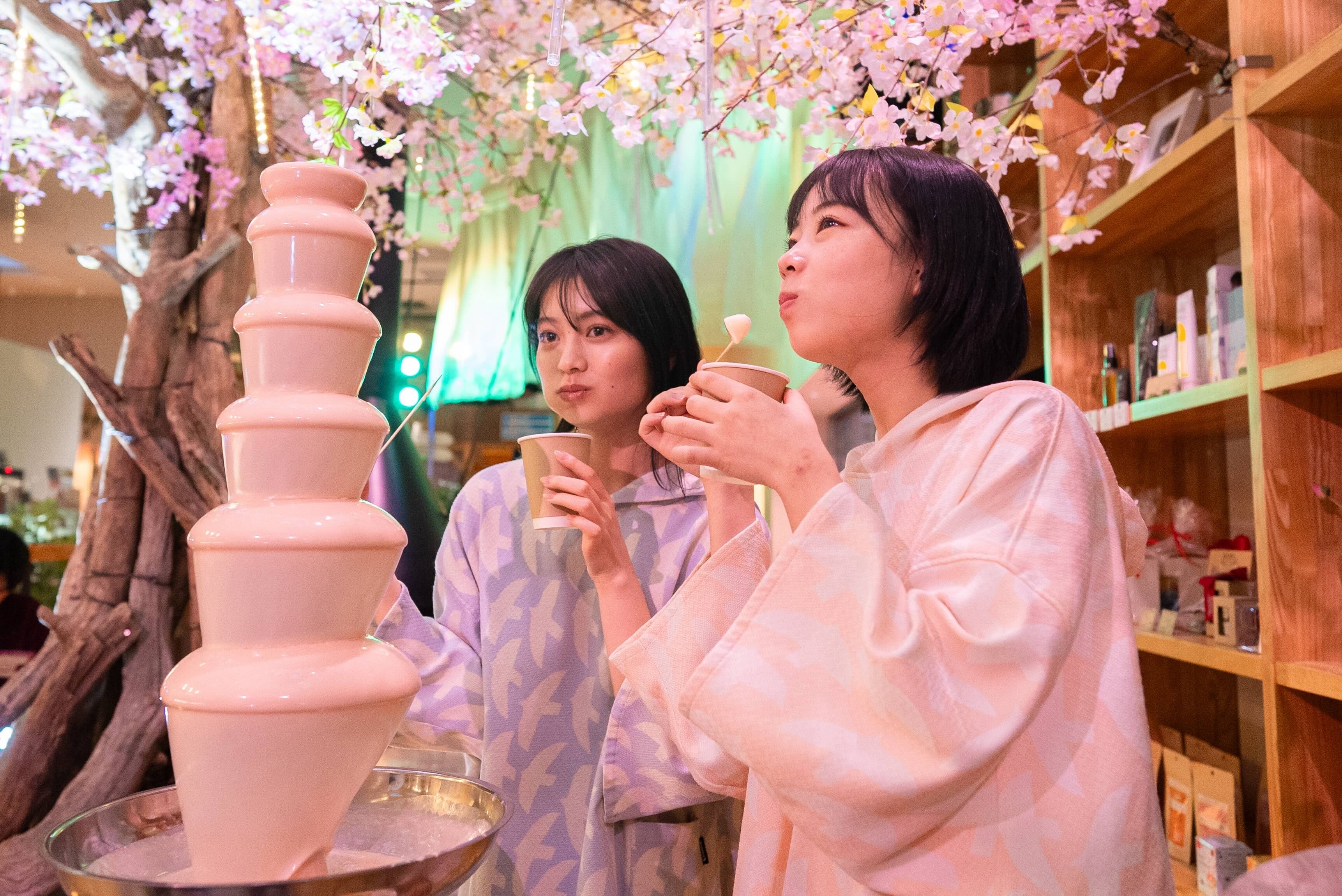 真っ白なホワイトチョコレートと桜を掛け合わせた、見た目も華やかなチョコファウンテンが登場。新しい門出を祝う「真っ白な気持ち」を、旬のいちごなどの甘いスイーツにたっぷりつけてお楽しみください。