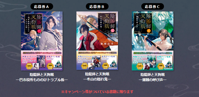 『陰陽師と天狗眼』シリーズの帯についている応募券をハガキに貼ってご応募いただくと、