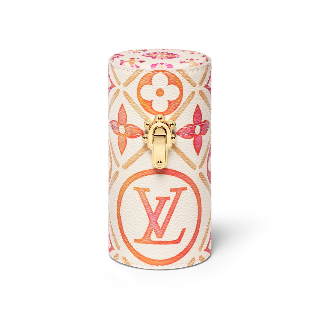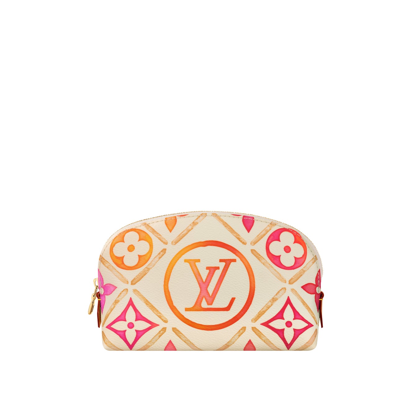 ほぼすべてのバッグに収納できるサイズの「ポシェット·コスメティック PM」夏らしい色合いとセンターに配したLV サークルがグラマラスな表情を演出します。水拭きできるライニングとファスナー開閉式の開口部を備えた実用的なアイテムです。