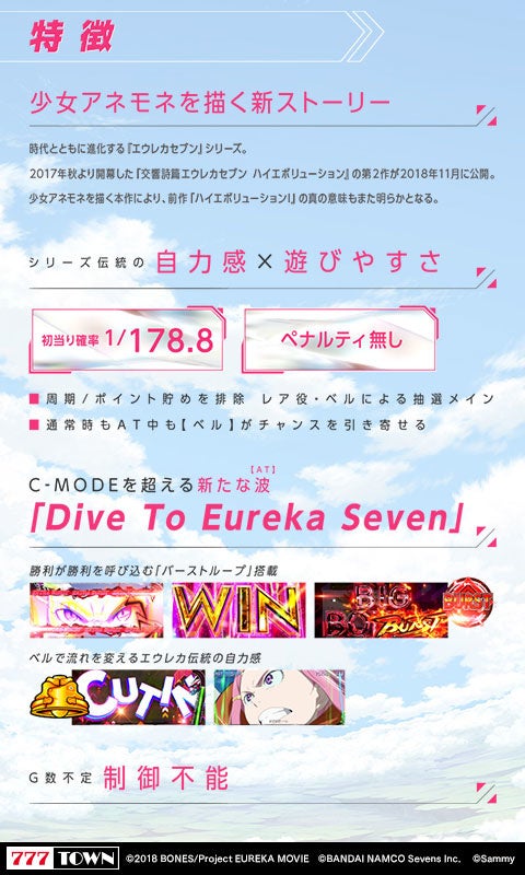 シリーズ最新機種「パチスロANEMONE 交響詩篇エウレカセブン HI-EVOLUTION」が777TOWN mobileに登場!