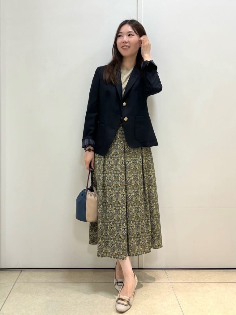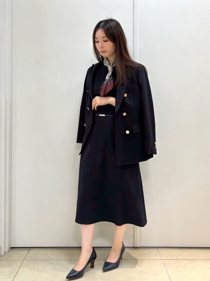 毎月11日はブレザーDAY! 今回は、ダブルブレストブレザーをワンピースと合わせてきれいめコーディネートにしました。 自然な光沢感が品のあるカルゼ生地を使用したダブルブレストブレザー。 こなれた雰囲気が女性らしさを引き立ててくれます。
