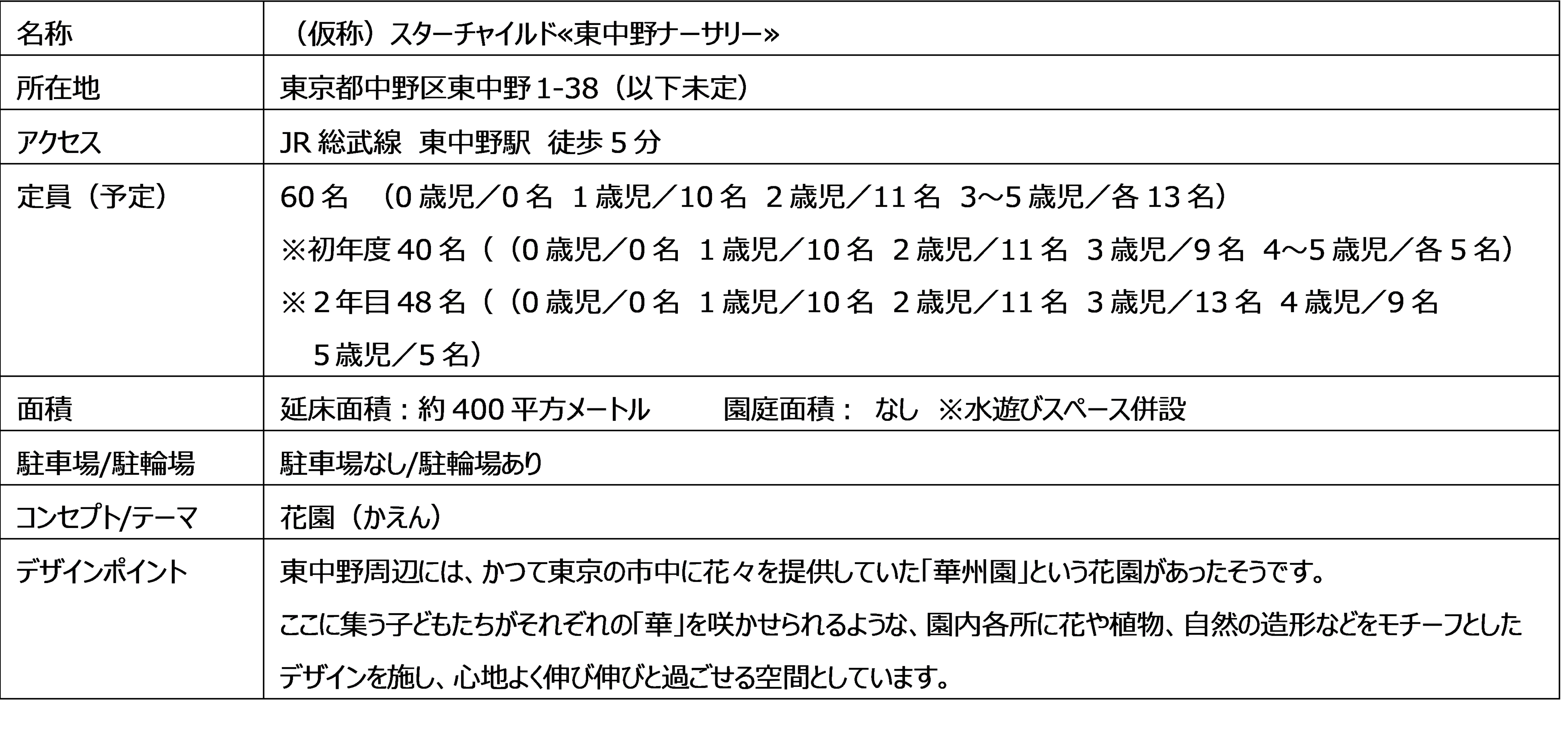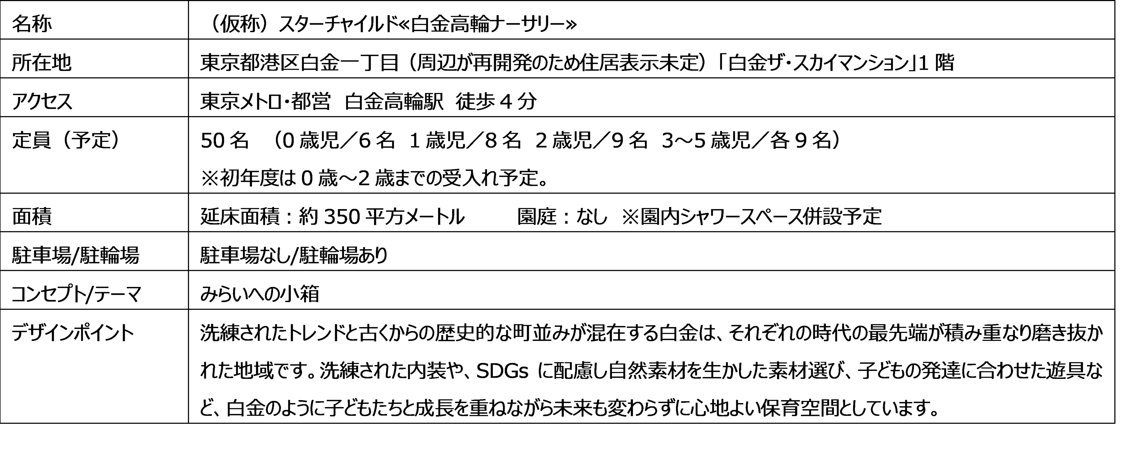- スターチャイルド初となる東京都港区・中野区へ認可保育所を2023年4月1日に新規開園