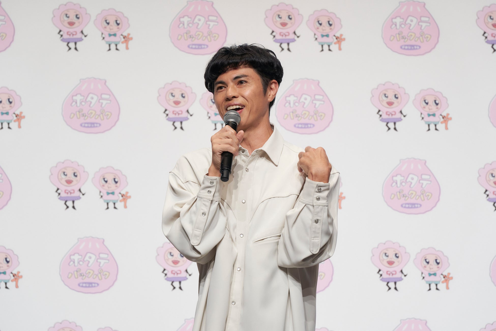 一児の父・小島よしおさんが子どもと楽しめるオリジナルホタテソングを歌って踊る! ホタテの魅力を伝える姉弟“タッティちゃん&カイくん”が初お披露目