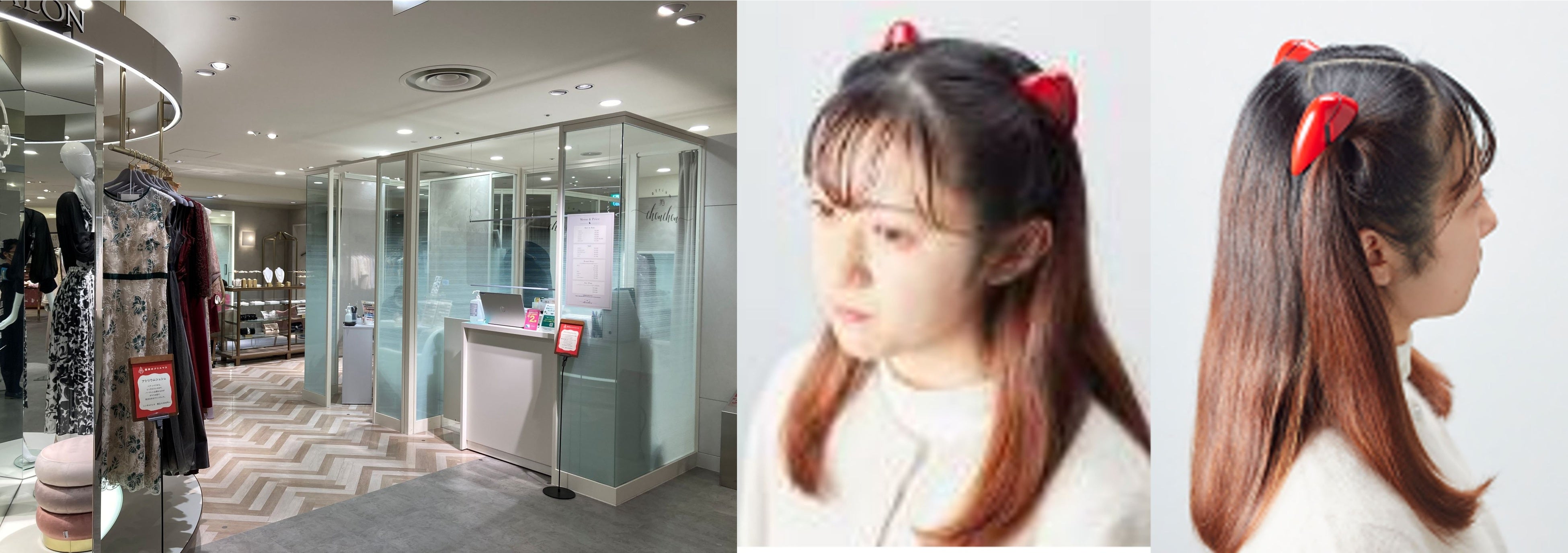 アスカをイメージしたヘアセットのサービス。赤いインターフェース付き。所要時間約30分。要予約