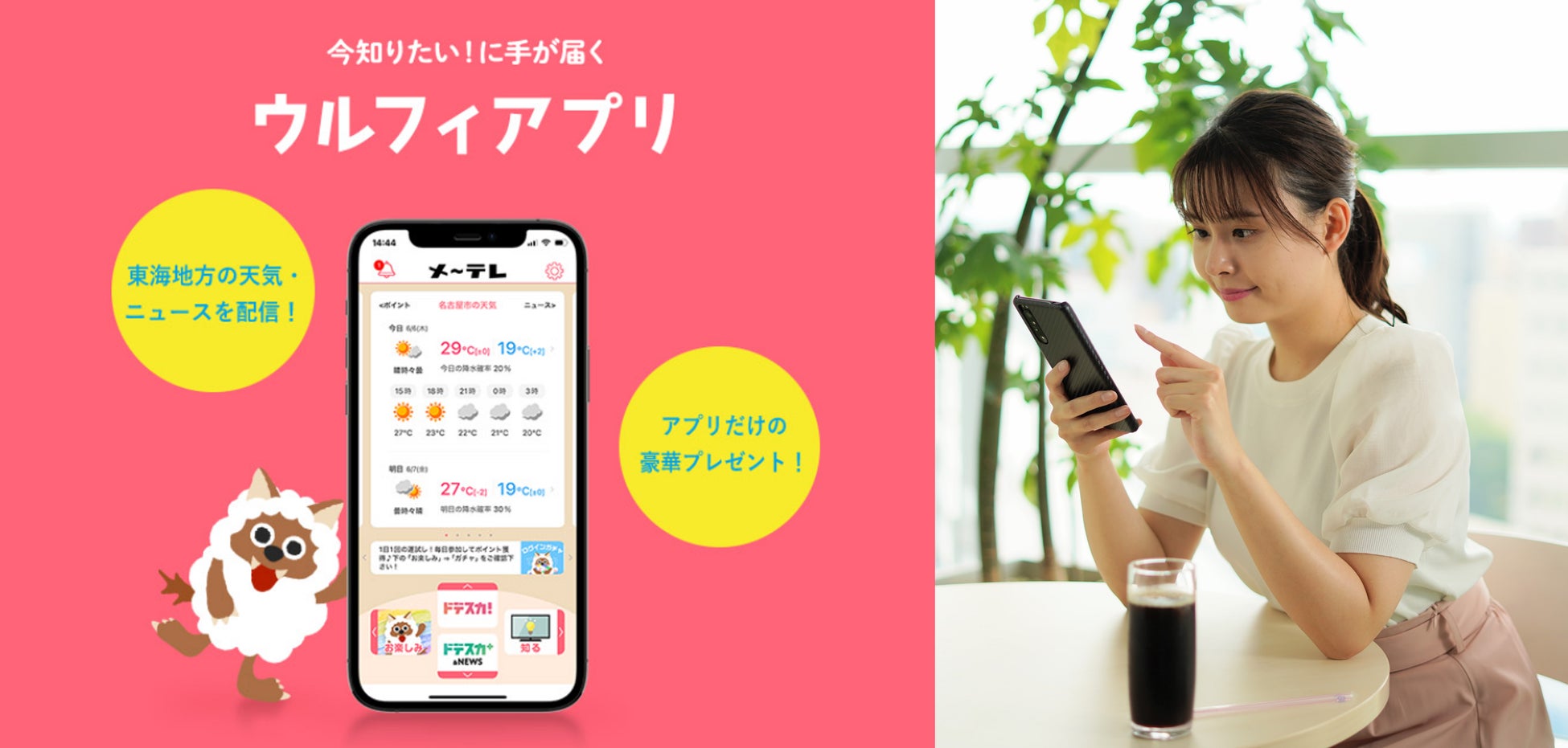 メ~テレ(名古屋テレビ放送)は、2025年2月20日(木)よりメ~テレ公式『ウルフィアプリ』でイベントのチケット販売を開始します。ウルフィアプリは2021年7月19日の配信開始以来、地域の皆様と「つながる」アプリを目指し、多くのアップデートを実施しています。おかげさまで17万ダウンロードを突破いたしました。ますますパワーアップしたウルフィアプリをぜひご活用ください。