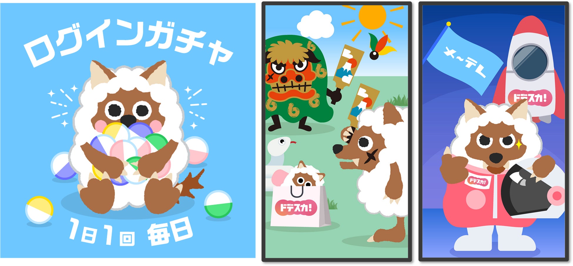 毎日の運試しができる「ログインガチャ」、かわいいウルフィの様子が見られる「ウルフィの部屋」など、楽しいコンテンツも続々登場!