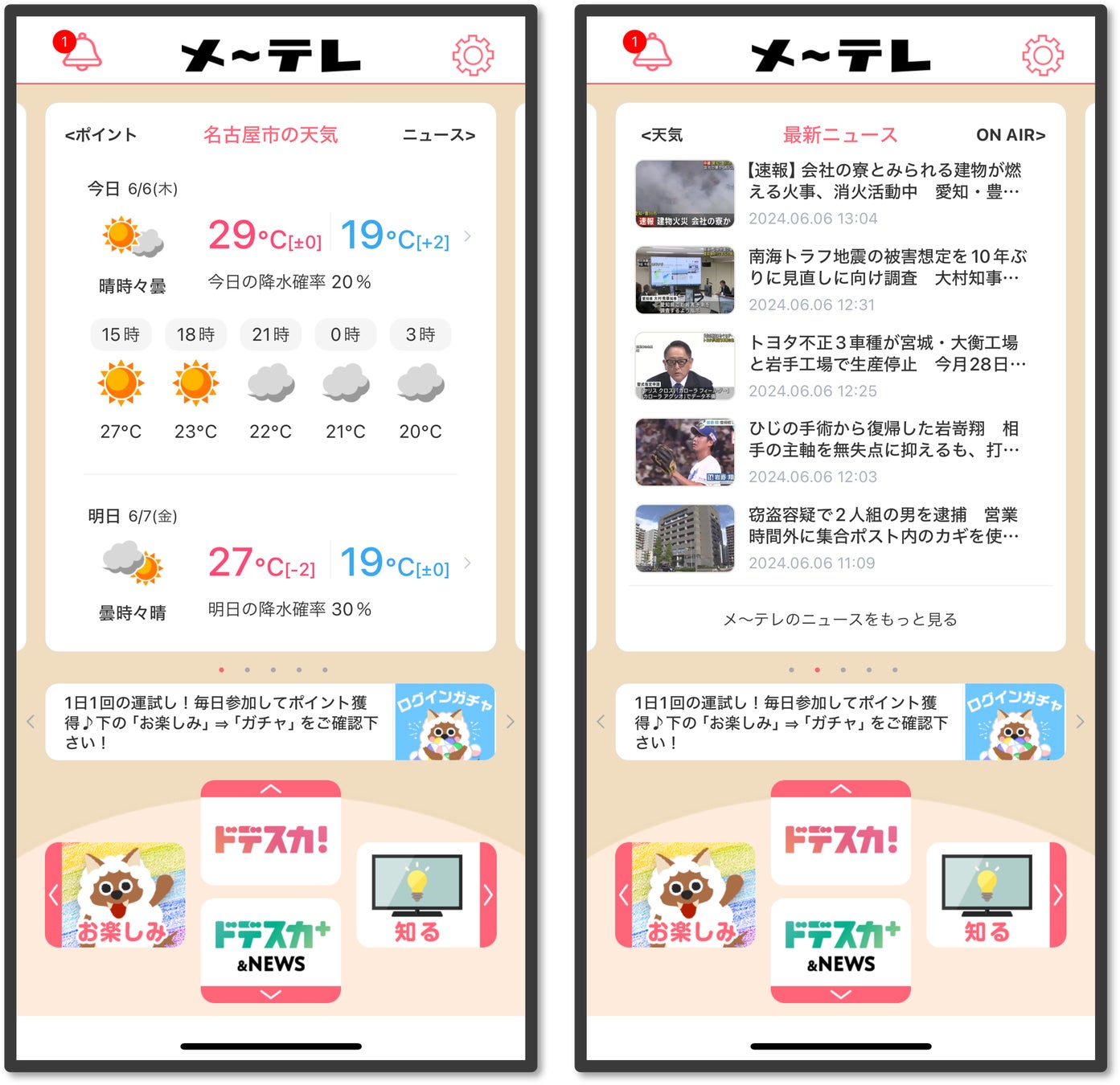 2021年7月19日に配信開始したメ~テレの公式アプリ。