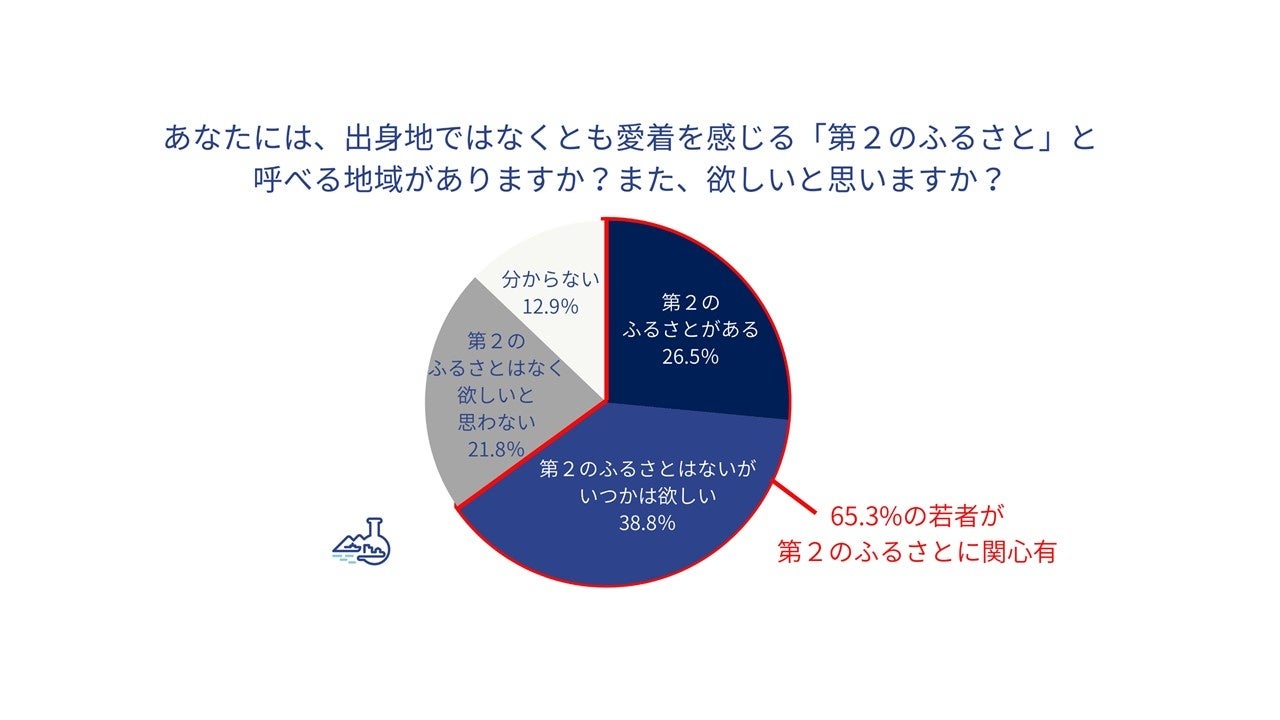 ふるさと納税での寄付経験や寄付意向を尋ねると「寄付したことがある」が23.9%、「寄付してみたい」が42.4%。出身地ではなくとも愛着を感じる「第2のふるさと」に関心がある人(「第2のふるさとがある」「いつかはほしい」の計)は65.3%。「第2のふるさと」があり「ふるさと納税経験がある」人において、第2のふるさととの出会いは「ふるさと納税がきっかけ」という人が72.3%。東京圏出身の若者に絞ると、79.8%にのぼった。